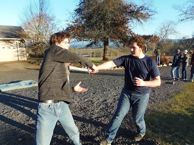 Secondly, on Sunday, the stunt team met to continue learning the fine art of dagger plays. They made good progress, despite the complexity of the maneuvers.
